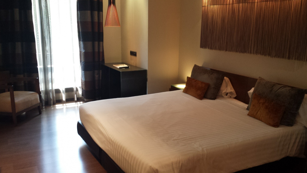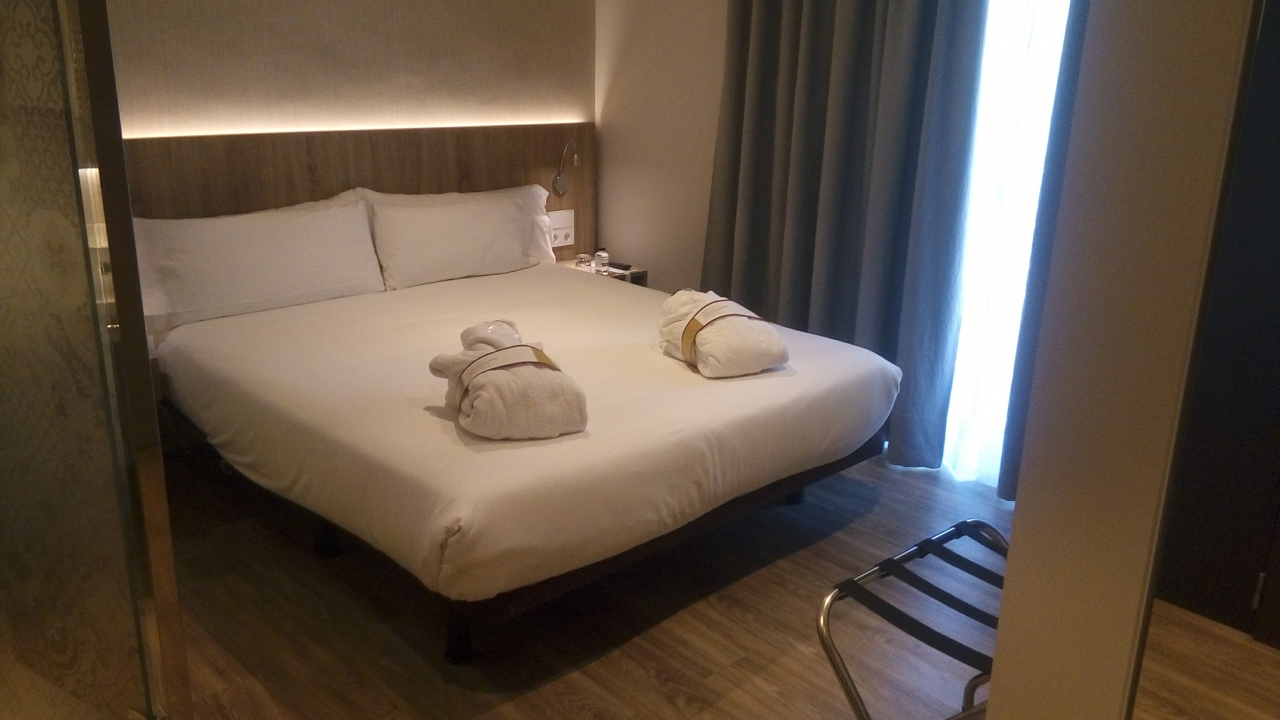 バルセロナの街中にあるアコー系列の中級シティホテル。観光にて2泊しました。朝食付きで1泊105ユーロぐらい。最近改装されたのか、モダンで新しいホテルです。徒歩5分以内に地下鉄があって移動も便利。アコープラチナ会員の威光にてベランダのついたデザイナーズルームにワンランクルームアップグレードされました。こちらのお部屋ではミニバーの利用が無料になってほくほくした気分です。アメニティも一通りそろっているし、ウエルカムのチョコギフトもあり、快適な滞在になりました。