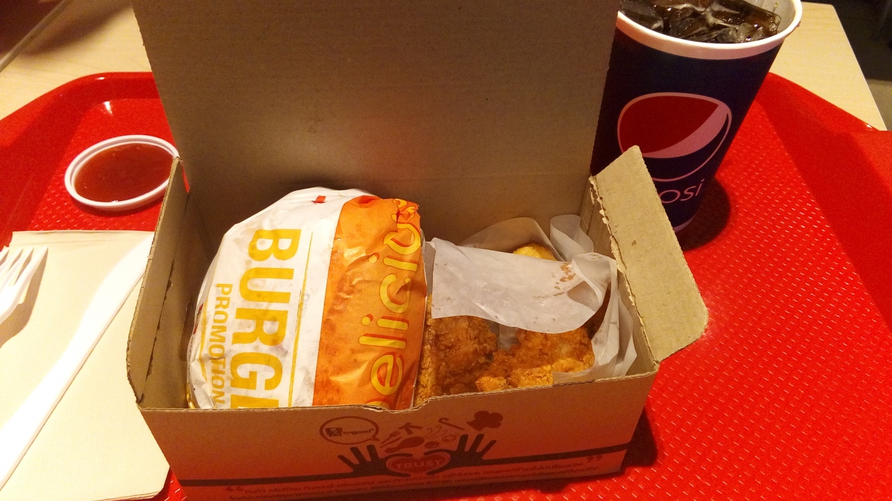 日本のケンタッキーは最近行ってないので、比較できないのですが、タイでもおいしいです。各種セットメニューが100バーツ前後と日本より安い価格なのがうれしい。きもち辛いのはタイ風アレンジなのかな。店舗によっては遅い時間でも開いているのがうれしい限り。