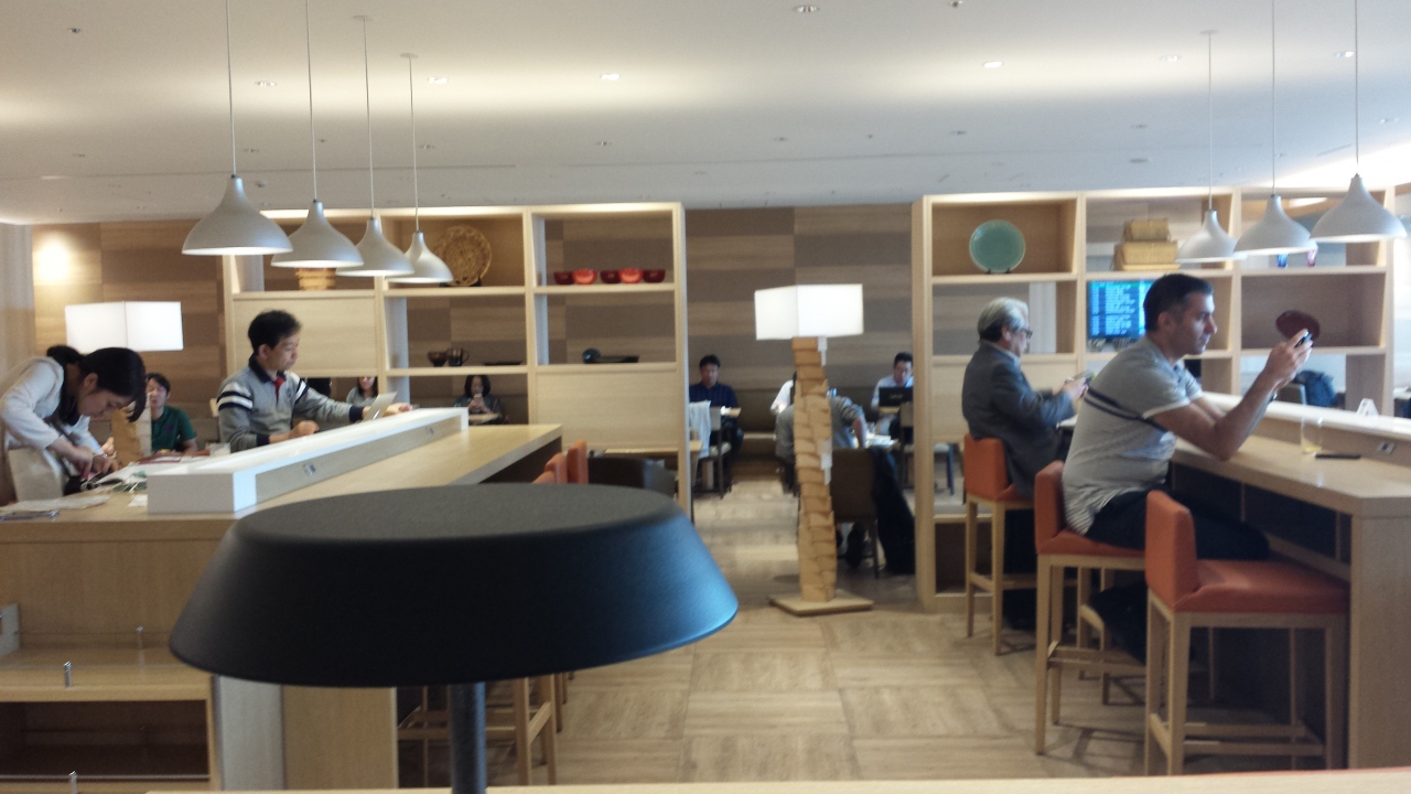 ビジネスクラスやワンワールド各種上級会員向けの空港ラウンジです。数か月前にANAのラウンジを利用してみて、ちょっとがっかりしていたが、JALのほうが一枚上手な感じがしますね。食事にしても和的な要素を取り入れたしっかりした料理。特にオリジナルビーフカレーはおいしいですよ。シャワー室もあるし、ワイアレス印刷サービスなどかゆいところにも手が届く。