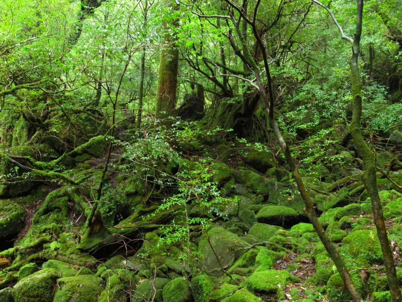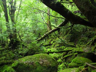 白谷雲水峡の奥深く、鹿のすみかといわれる倒木を過ぎた先に一面を緑の苔で覆われた景色が広がっています。あたりはうっそうと木々が茂り、空を遮りり、神秘的な景観を生んでいます。もちろん立ち入ることはできませんが、眺めるだけでも光悦とした気分になります。日本人が、縄文時代に森とともに暮らしていたころの原初の記憶を呼び覚ます何かがあるのかもしれないですね。