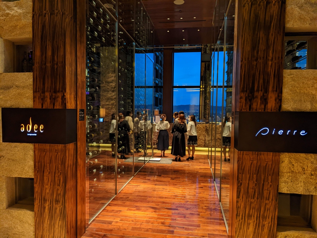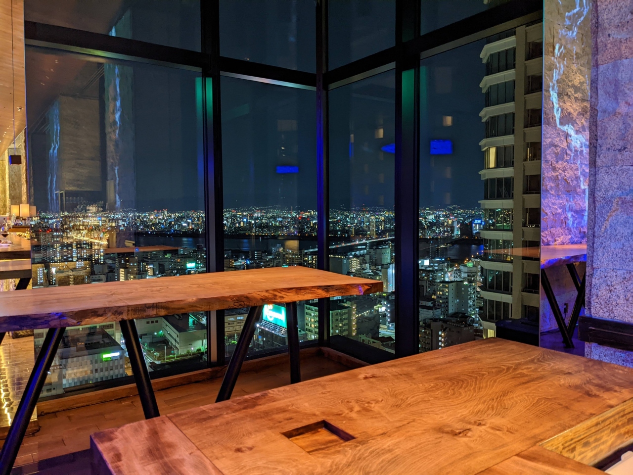 インターコンチ大阪内の20階にあるホテルバーです。インタコ宿泊時にIHGのドリンクチケットを利用して無料で利用しました。通常このようなバーはサービス料がかかったりするので大変オトクです。赤ワインはまあまあいいもの出してくるなと思いました。演奏もしていましたが、自分は静かな方が助かる。