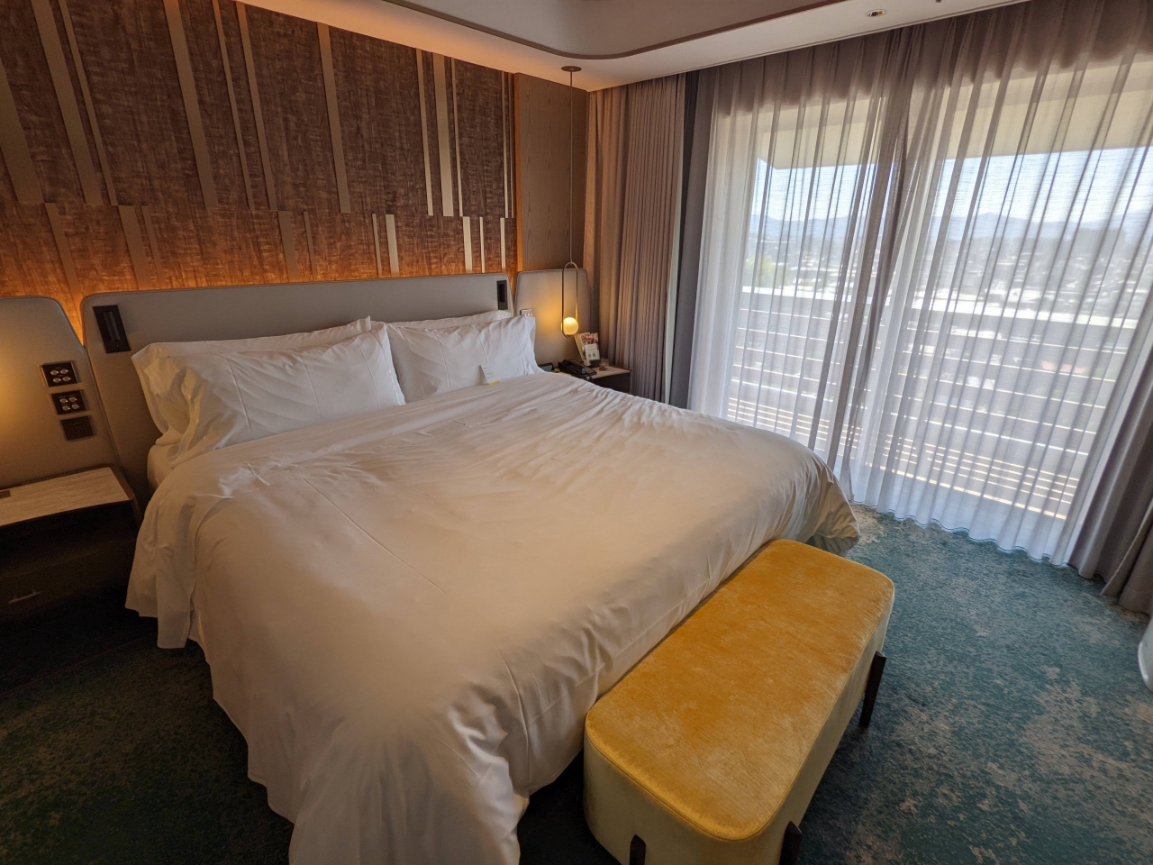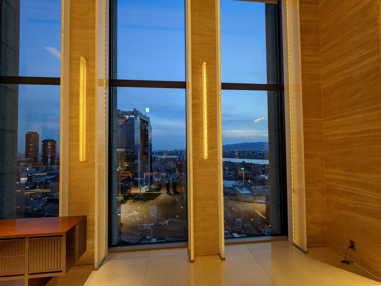 大阪屈指の高級ホテルでずっと泊まりたいと思っていたが今回ようやく実現した。オオバコホテルと思いきや意外と客間はそんなに多くなく、人は少なめで良いですね。スイートルームにアップグレードしてもらってホクホクです。60平米程度もあり、広さは十分。ただし隣のビルに遮られて眺望はいまいち。調度品や質感はさすがの一言。今回良かったのは4階のジム。運動着から水着、靴まで無料レンタルできるので手ぶらでOK。便利ですね。ベットも自分にあっていて熟睡できました。もうちょっと安いといいけど、コスパは悪いので残念ながら次回予定はない。