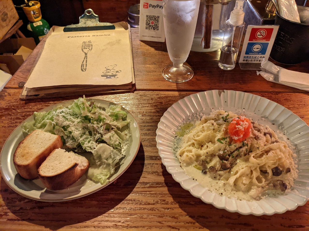 千日前の裏路地にあるお店。この界隈のお店は概してレベルが高いお店が多い印象だが、このお店もご多分に漏れず良い店だと思う。もちもちのパスタで、夜でも定食がたべれて良かったです。フォッカチャがうまいと口コミがあったがそのとおりと思う。