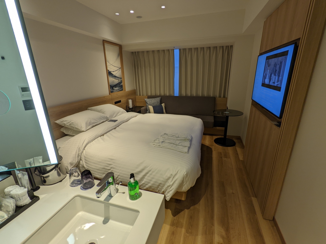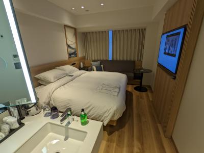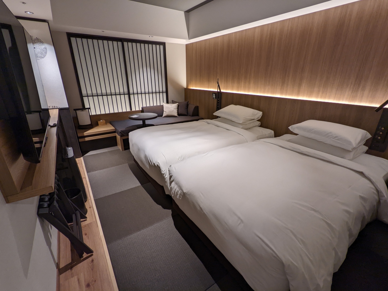 京阪3条駅から徒歩12分程度。マリオット系列で、日本では初のトリビュートポートフォリオ属性のホテル。気になっていたので、お値段お安い時期を見計らってまずはお試しで宿泊。最安値部屋からスーペリアツインのお部屋へ。全体的な設備、アメニティはレベルは高くお部屋も狭くはない(27平米程度)が、手狭に感じる。このタイプでキングサイズベットがあるといいのにと思います。大浴場は温泉ではないもののGood です。上級会員には無料の朝食がつかないのが痛いところ。コンセプトは好きなのだが、色々惜しい。