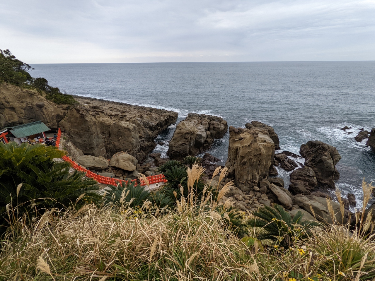 鵜戸神宮へ行く途中にあり、バスで行きましたが気になって帰りに途中下車しました。日南海岸国定公園内にある道の駅。とても見晴らしのいい場所にあり鬼の洗濯岩が一望できます。日本じゃないみたいな光景ですね。あいにくの曇りでしたが晴天だとさぞかし気持ちよさそう!