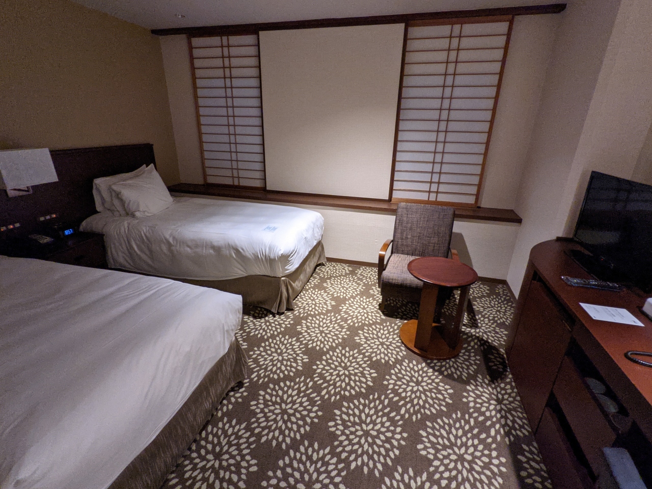 2年半ぶり2回目の宿泊。金沢ローカルデパートエムザ直結で、近江市場にも近く、重宝します。こちら16回にフロントがあって、雰囲気がとても良いです。特に夜景が良い。今回は最安値部屋予約からデラックスツインのお部屋へ。24平米くらいはあるかな一応風呂トイレ別です。お風呂はちょっと年季が入っているかな。金沢ではやっぱCPより断然こっちが好きだな。