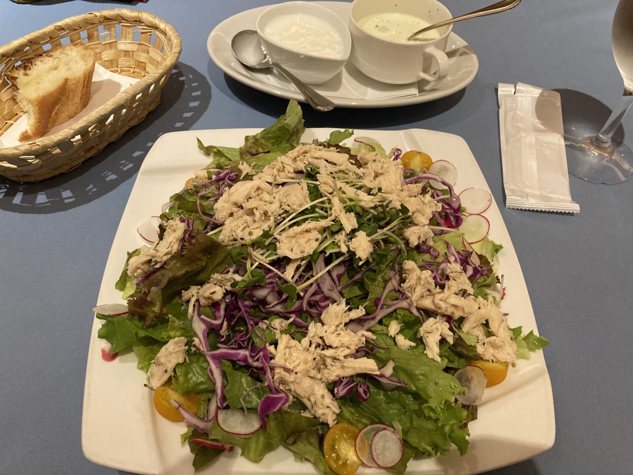 ちょっとわかりづらいですがスルガ銀行が入っているビルの地下1階にあります。三越本店の目の前で立地はいいのにワンドリンク付きのランチが千円から、と非常にリーズナブル。サラダランチも十分にボリュームがありました。共立メンテナンスのグループです。