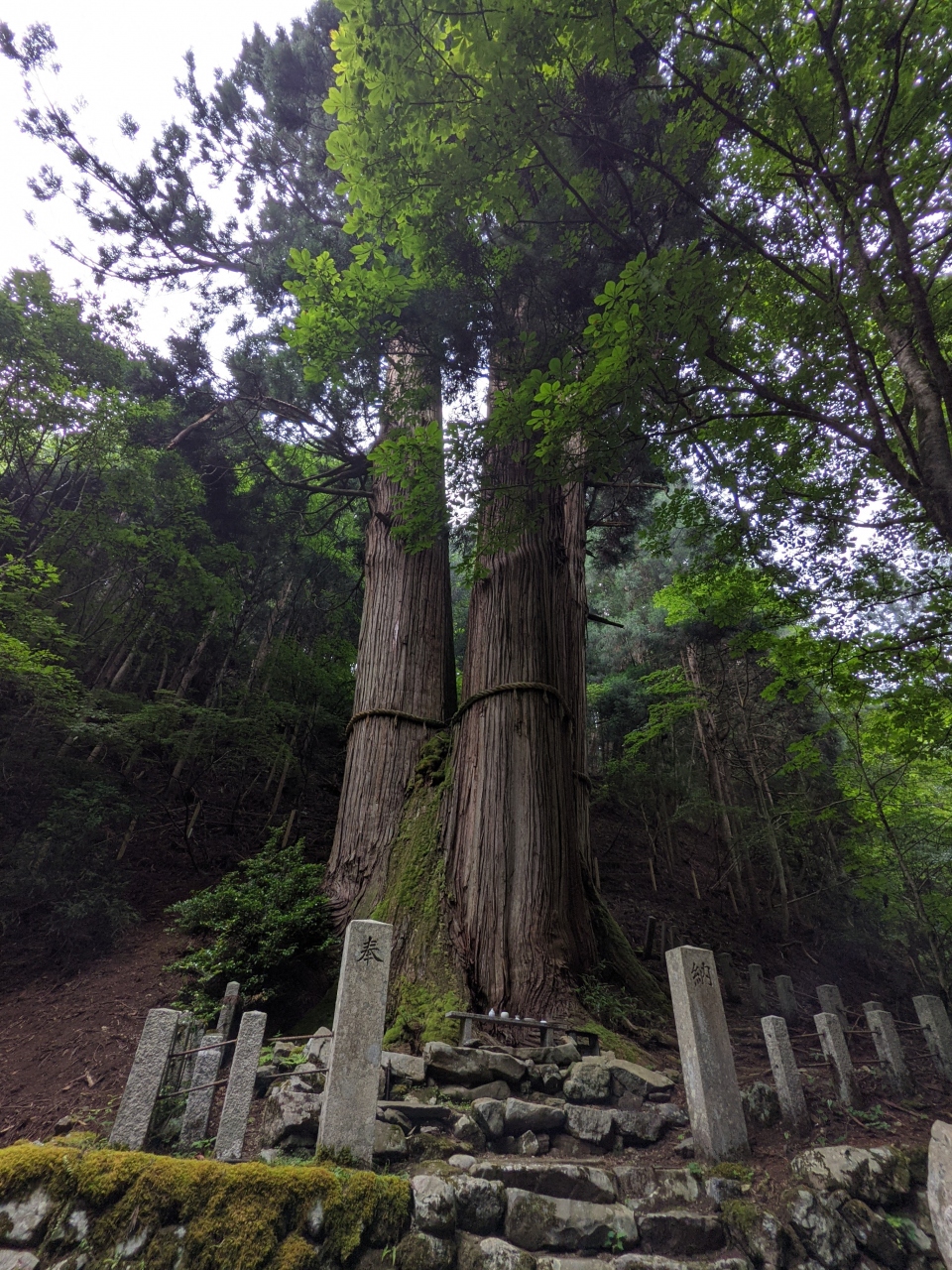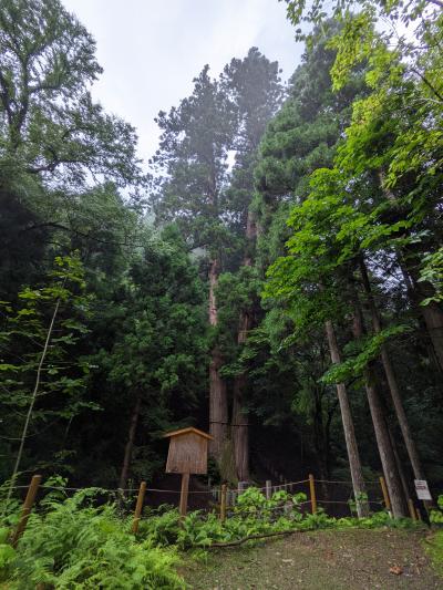 京都の奥座敷ともいわれる花脊までやってきました。目的は近年になって日本一の樹高があるとわかった三本杉を見に行くこと。残念ながら管理している峰定寺はコロナで閉まっていたが、三本杉の見学は可能とのこと。大悲山のバス停から歩くこと約1時間で到着しました。ものすごい圧倒される景観でした。時間があればハイキングコースを回って山を下りたかったがバスの時間もあるので引き返しました。