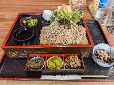 大悲山バス停目の前にある茶屋。ご夫婦でやっておられるようだ。ランチもあります。山菜定食や山菜そばがありました。バスの待ち時間もあったのでそばを注文。(1000円)10分ほどで出てきました。山菜や天ぷらがてんこ盛りでボリュームがありおいしかったです。