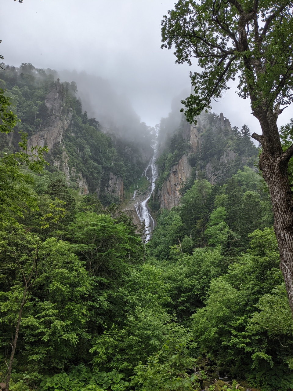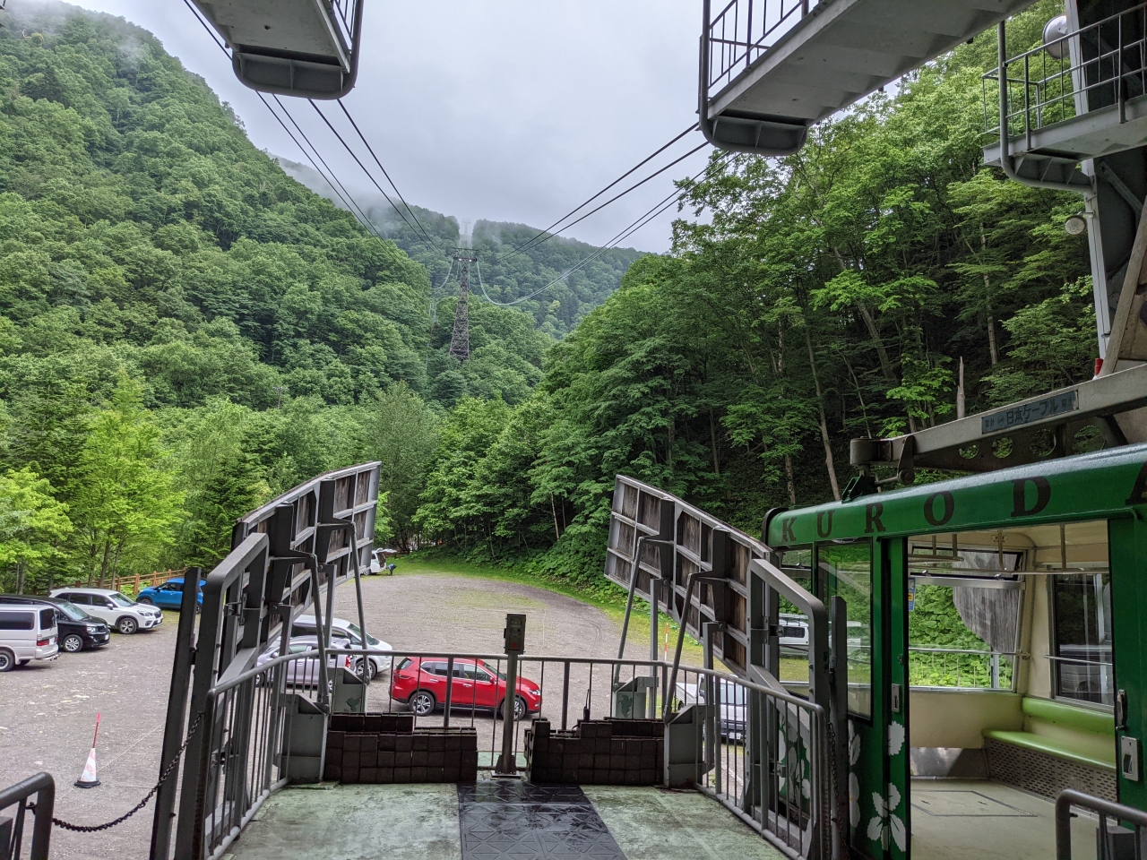 層雲峡のふもとから15分あまりで1300メートルの地点へ引っ張っていきます。1960年代からある歴史あるロープウェイ。残念ながら曇っていて眺めはよくありませんでした。紅葉の頃は良さそうですね。料金は往復で2400円高め。