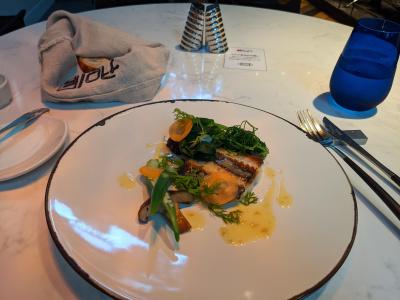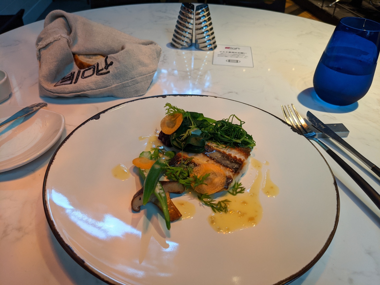 銀座にできたアロフト2階のおしゃれなレストラン。スタッフは美男美女ぞろいなのでおっさん一人で入るには気が引けるが致し方ない。朝食のほかランチ、ディナーもこちら。今回はプラチナ特典のランチで無料で食べたが、いやはやフルコースの上品なセットメニューに舌鼓を打ちました。