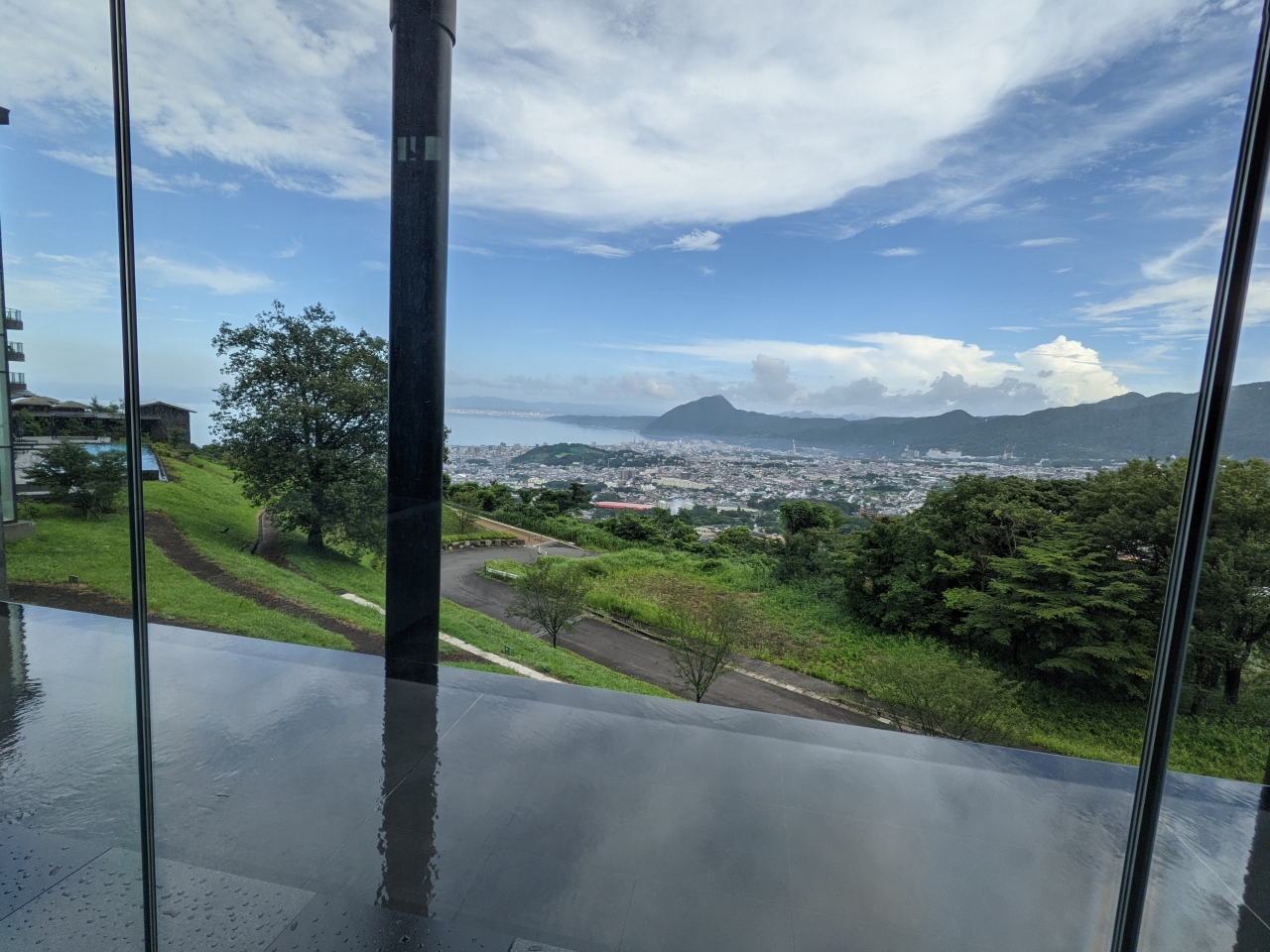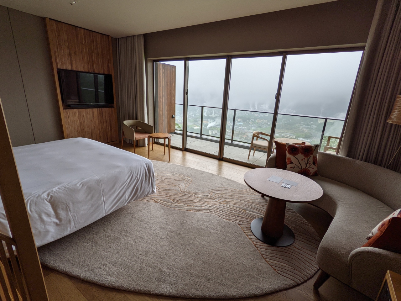 前からずっと気になっていて、思い切って宿泊。IHGポイント60000で宿泊しました。最安値部屋からプレミアムキングへアップグレード。ほぼ想定通り。お部屋は上質で景色も気に入りましたがはっきり言って水回り関係(洗面台、バス、トイレ)でスペース食いすぎです。どうせみんな温泉に行くのだから極論バスなど不要なのです。ベランダの空間は素敵だが夏場はベープを常備ぢてほしかった。スタッフの接客は良好で若い人が多いですがかなり好印象です。名前も覚えているみたいだし。温泉はかけ流しではないが風景がいいのでとても気持ちいい。どうせなら明礬温泉から源泉引けばいいのに。レストランはそうそうに閉まるのでディナーはルームサービスで海鮮丼にした。味は良心的で3千円強とそこそこ良心的。2時チェックインの2時アウトで滞空時間24h。別府駅から無料の送迎サービスあり。タイムテーブルにとらわれずに機敏に送迎対応してもらって助かりました。総じて満足です!また機会があれば泊まりたい。景色重視派の人におすすめ。クラブルーム宿泊こそが志宝だと勘違いしている投稿も見られますが別にクラブルームがなくても十分たのしめますよ~。逆にラウンジアクセスと室内の(狭い)温泉風呂がついただけで2万円上乗せはきついです。自分は福岡で上質なお酒をしこたま買い込んで部屋で楽しんでました。