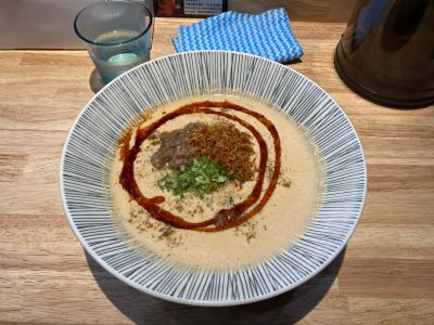 宿泊先の近くにあって気になっていってみました。濃厚エビの担担麺950円也。ちょっぴりから目で上品な味です。エビもいいアクセントに。辛さが足りなければ花山椒をセルフで追加できます。久々に自分好みのラーメンに出会った気がした。