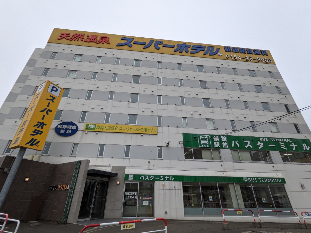 1泊平均4500円弱で宿泊。釧路にスーパーホテルは2つあるが、悩んだ末駅前がいいだろうと思いこちらにしたが、釧路の町の中心は駅周辺でなく、市役所方面であることに到着してから気づく。飲食店街からは離れてるんですよね。さてこちらのスーパーホテルは客間の間取りがいつものスーパーホテルよりいい感じでとても快適でした。温泉もしょっぱくていい感じ。また夜の23時までワインやソフトドリンクが無料で飲めるサービスもよい。朝食が8時半で終わるのはもうちょっと何とかしてほしいかな。