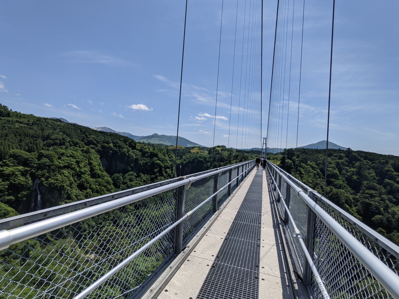 コロナであってもそこそこ人出がいました。結構マイナー観光地かと思いきや、人気な様子。入場は500円です。相当な高さなので高所恐怖症の自分としては足が震えてくる。行って、帰ってくるときにはなれました。滝が2つ見えるし、景観はよいですよ★