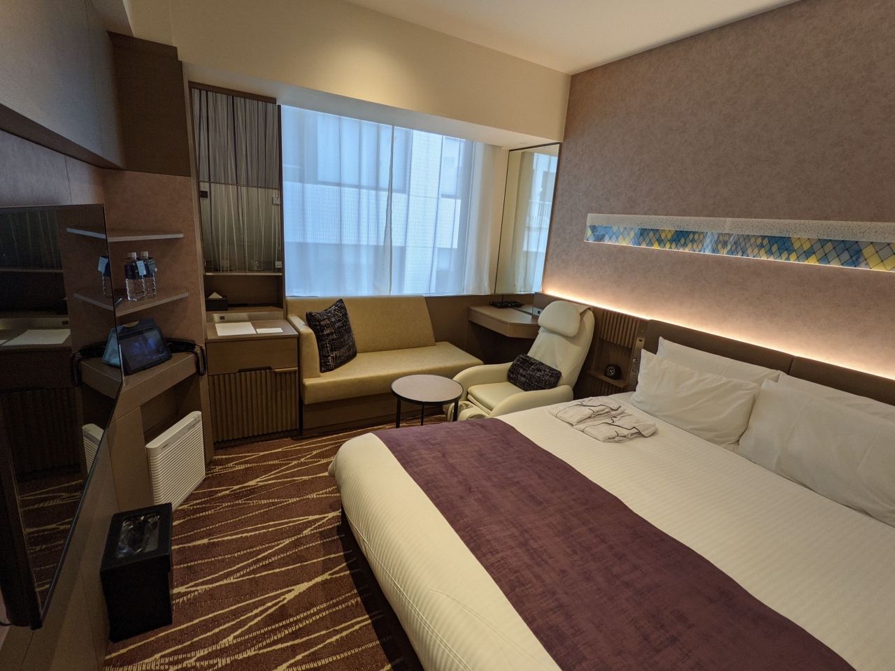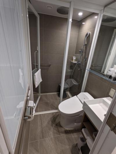浅草駅近辺ではベストのホテルです。いつもの定宿候補のうちの一つ。セールで1泊3500円程度で宿泊できました。18平米でバス・トイレセパレートで、まるでマンション