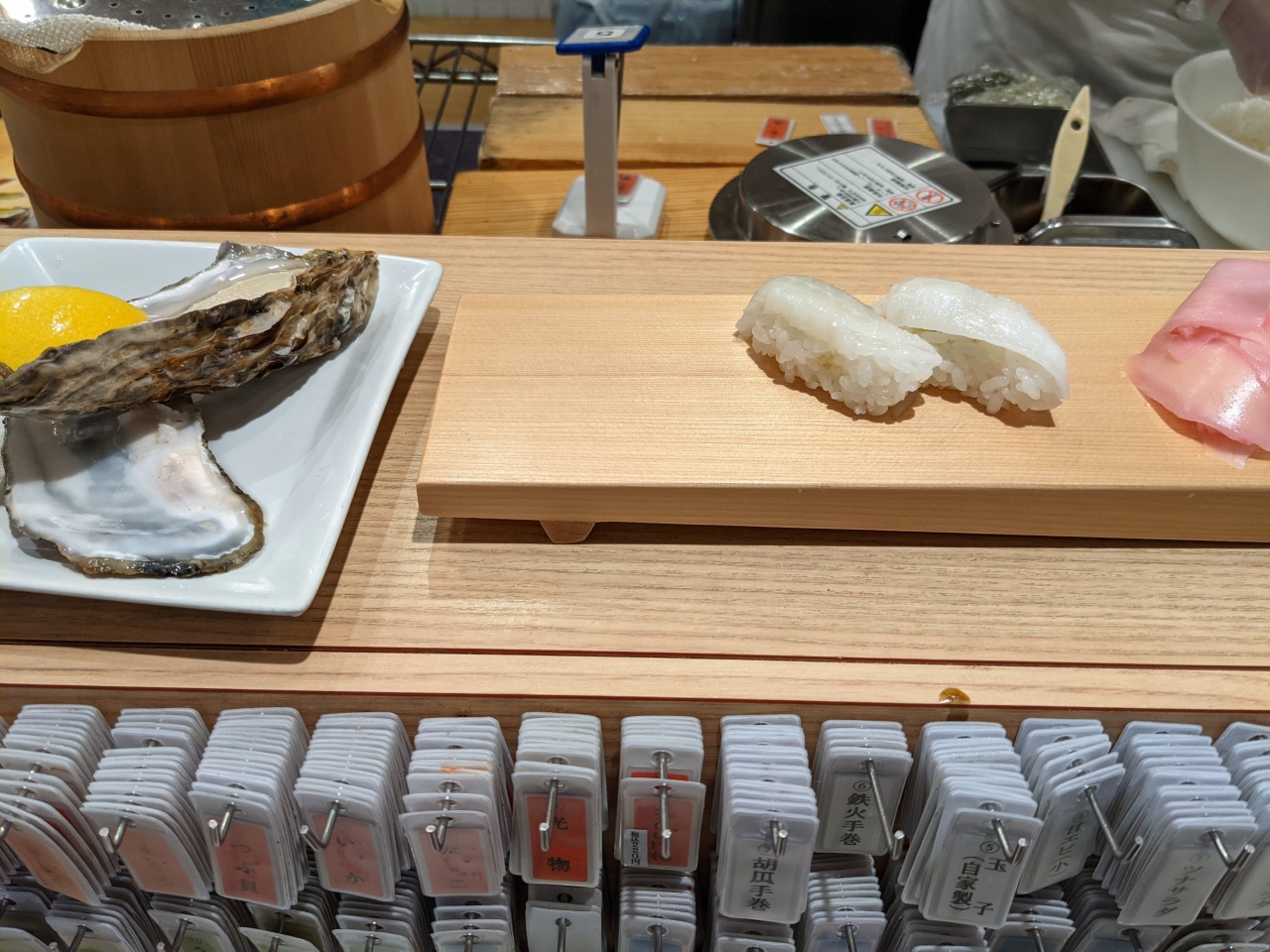 関西で展開する立ち食い寿司チェーン。機械ではなく、人間が握ってくれる寿司屋。100円からありますが、100円のネタは殆どないので、実質的には200円から。なんば地下街で駅からのアクセスはよく、気軽に立ち寄りやすい。