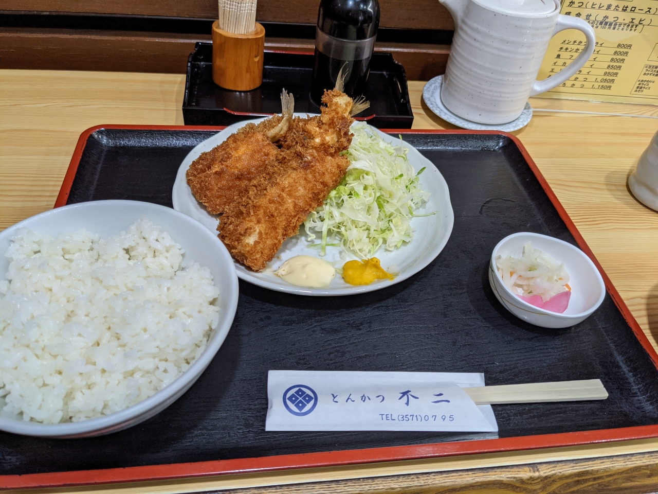 銀座本店は移転中で仮設店舗での営業です。一見高額で気後れしちゃいそうですが、かつ丼やかつライス(100g)であれば1150円とリーズナブル。ライス、みそしる、キャベツお替り可なのでむしろ他チェーンより安いかも。