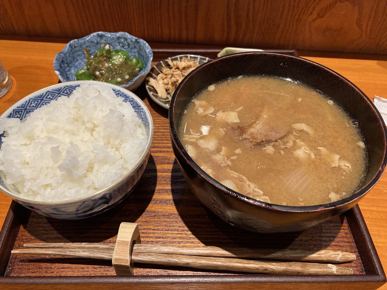 本店は西麻布にあるみたいですが、大手町にも出店しています。パークビルの地下一階の小さなスペースです。ランチは千円未満で大手町平均からは若干安いですね。豚汁が具だくさんで美味しくて良かったです。注文してすぐ来ました。