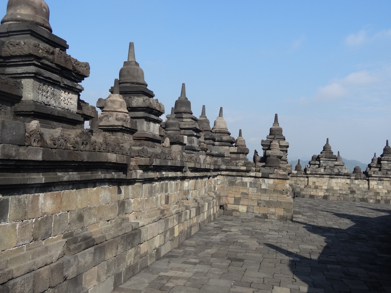 9世紀に建立されたヒンズー教のシンボル的な遺跡群。ロロジョングラン神殿を中心にとてつもなく広大な寺院です。ボルブドュール遺跡の近くにありながら、宗教の違いもあって全く雰囲気が異なります。沢山の壊れた建物もありますが、残念ながら再建は難しいようです。ちょっと異色なヒンズーの石仏も印象に残りました。
