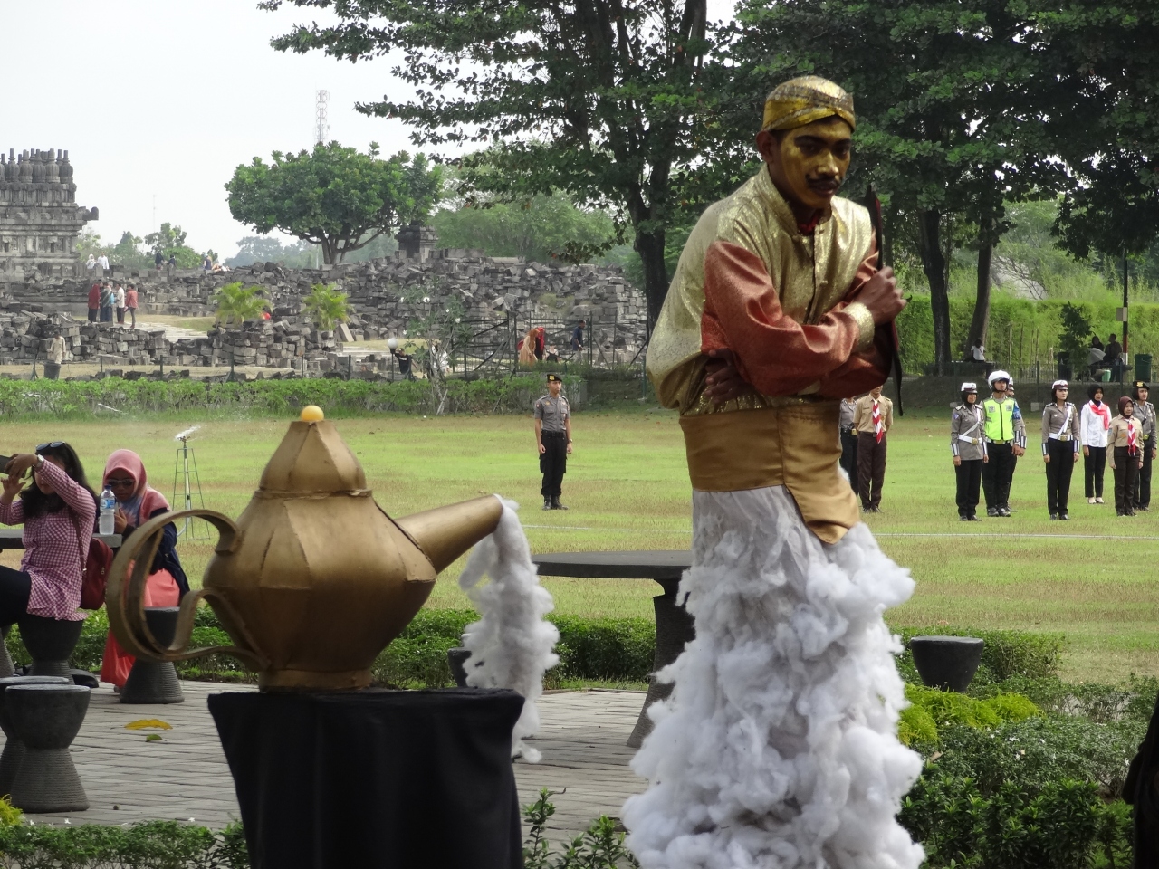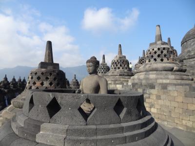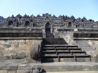 世界遺産のボルブドュールを中心によく手入れされた広い公園です。入り口にあるカジュマルの木がとても立派で印象に残りました。入園料は2200円とちょっと高めで、専属のガイドさんも1時間1500円で説明してくれます。絶体にガイドは必要ですよ。だいたい2時間あれば見て回れます。