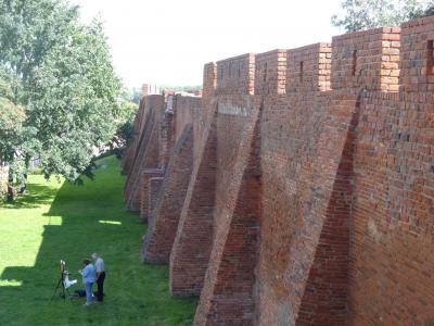旧市街地を取り囲むように続くバルバカン。レンガ造りの壁や建物がとても美しい。第二次世界大戦によってかなり破壊されたようだが、今は以前のものを忠実に再現し、りっぱな一画になっている。このあたりすべてが、戦前のように再現されているのは見事としか言い様がない。