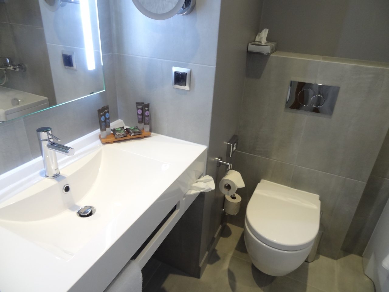 部屋全体が近代的な作りになっている。バスルームもバスタブが深く入りやすいが、シャワーカーテンがないので苦労した。ホテル入り口には小さな人形がある。この町のシンボルで200数十体の小さな人形が町中にあり、それを探すのもおもしろい。水はサービスで老いてあるが、炭酸いりでのみにくい。空調設備も完璧だった。Wi−Hiも無料。- 旅行時期