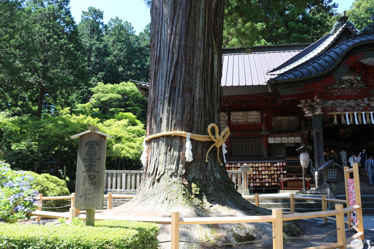 忍野村の忍野八海から近い所にある。富士山と書かれた立派な鳥居を越えて100メートル以上参道を進む。元々は諏訪神社があったらしいが、その地に浅間神社が出来たらしく御朱印には、諏訪神社と浅間神社のものがあり選ばせてもらえる。立派な拝殿の横には「富士太郎杉」と呼ばれるご神木があり見事だ。