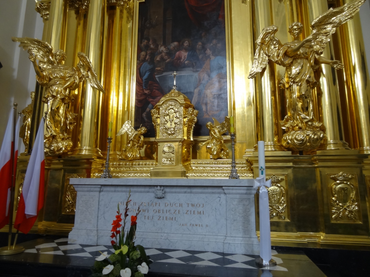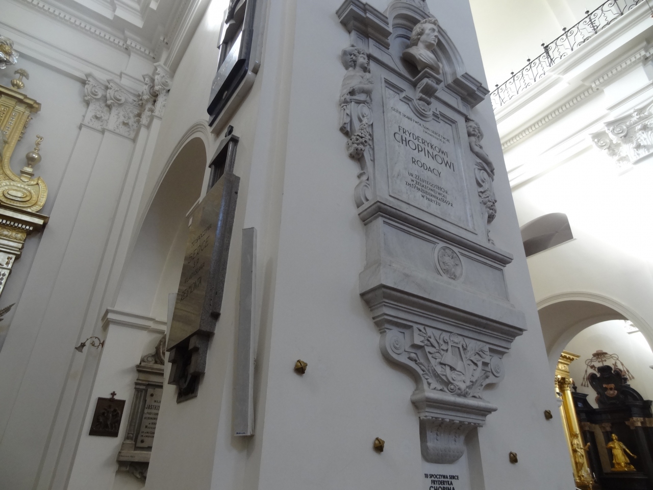 ショパンの心臓が安置されているのは入り口左側の一番手前。プレートが掲げられているのですぐに分かる。それにしても厳粛で立派な教会。金銀がふんだんに使われていて思わず息をのむほどの内部。自ずと見学者も静かになってしまう。入場も無料。