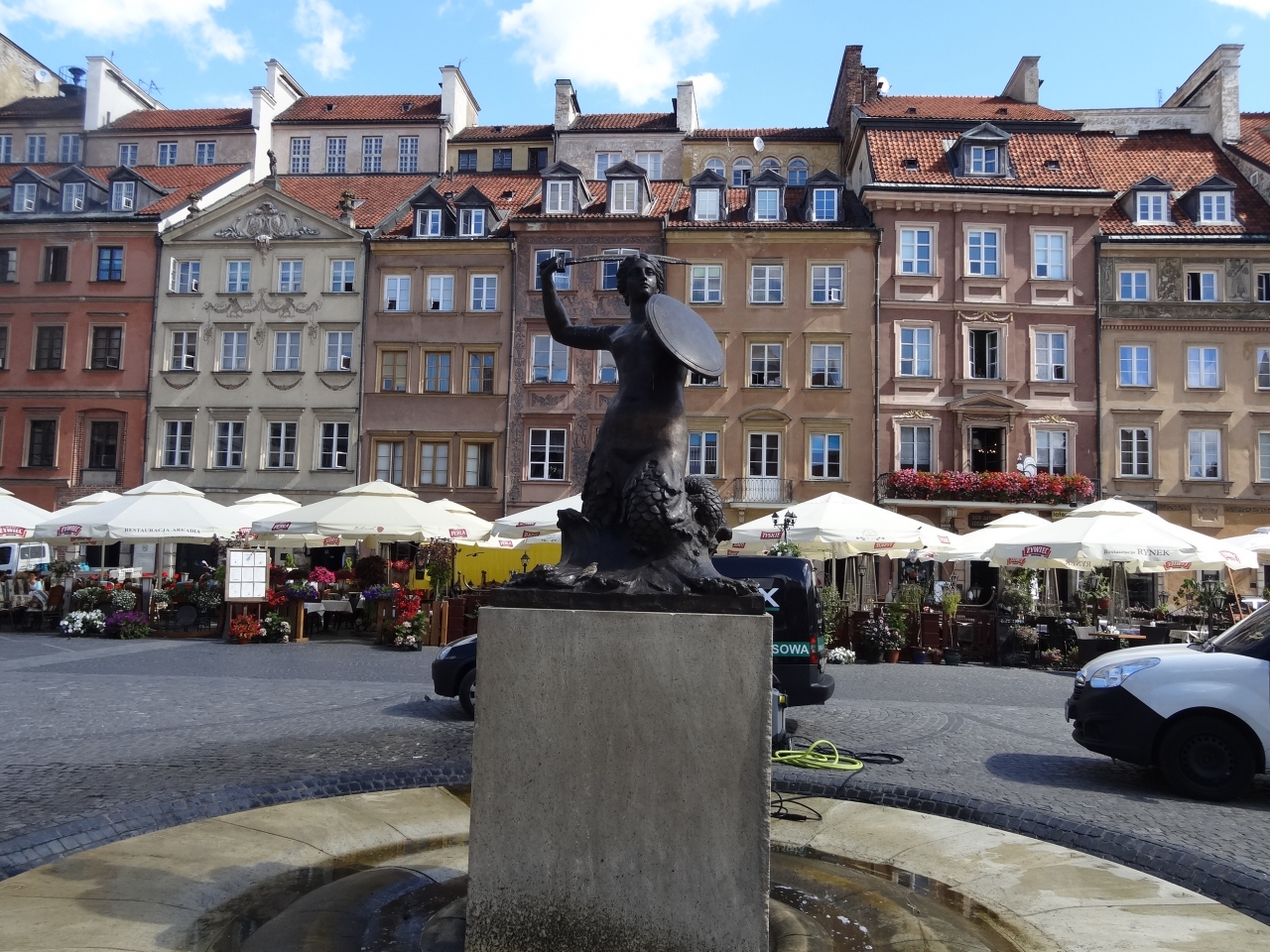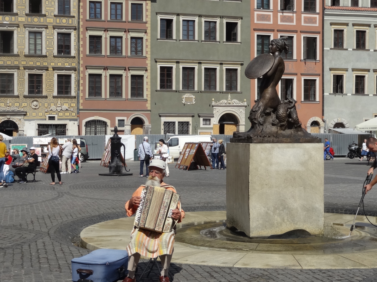 人魚像は2つあり、旧市街地広場の真ん中とシレナ橋のたもとにある。ワルシャワ市の紋章が人魚をデザインしてある。たいして人だかりも出来ていないので記念写真も容易に撮れる。また、たまたまおじいさんがアコーディオンを弾いていてヨーロッパらしさを感じた。