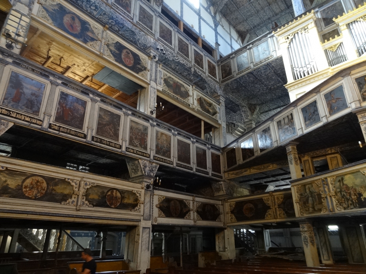 30年戦争でハプスブルグ家の支配下になったが、住民のほとんどがプロテスタント。ハプスブルグ家は当然カトリックであるが、住民の粘り強い信仰心がこの教会を作った。すべて木造で釘を使わず、建築の年月も制限されたなかで、素晴らしい教会ができあがった。そして300年、人々はこの教会を守り続けている。入場には10ズロチ必要だが、何と日本語で教会の説明をしてくれた。帰りにジェイン・クーエ(ありがとう)と言うと、とっても満足な表情をされていた。