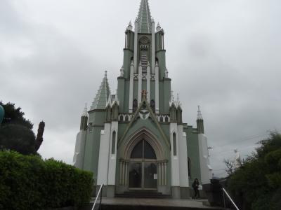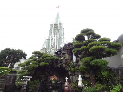 平戸には、フランシスコザビエルが3度も訪れたと言われる。現在の建物は、鉄筋コンクリートで薄緑色の綺麗に色になっている。左右が非対称のゴシック風の建物。残念ながら撮影はできなかったがミサの途中でなければ入ることもできる。すぐ近くには寺院もあり、ちょっと変わった風景。