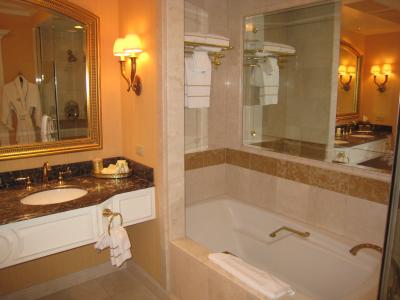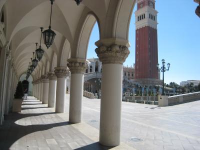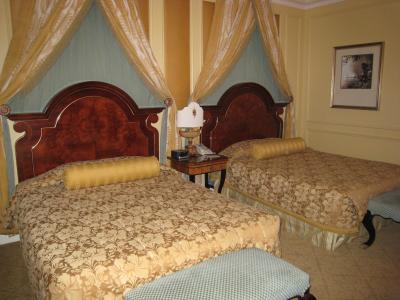 ベネチアのドゥーモを模した建物から、ゴンドラまでそのまま移転されている。ベッドルームも広く浴室も素敵だった。客室だけでなくロビーの天井もすごくこっているのには関心した。- 旅行時期