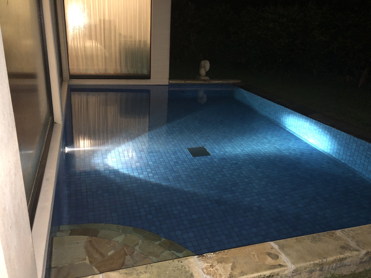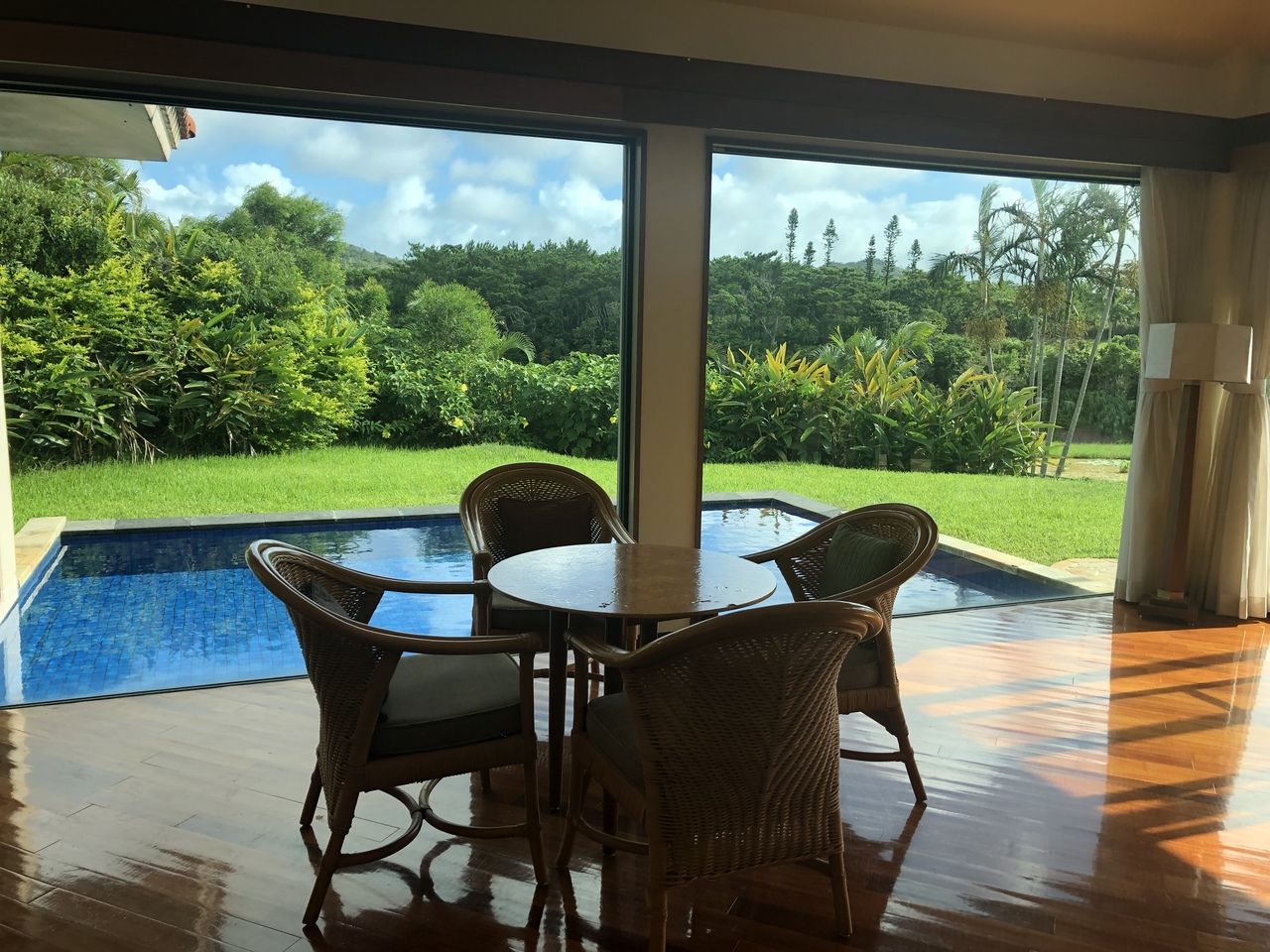 リビングの窓からそのまま行けるプライベートプールは思っていたよりも広くて深かったです。小さなお子さんは注意が必要です。 両隣のコテージでプールで遊んでいる声は聞こえましたが、見えないように作られています。
