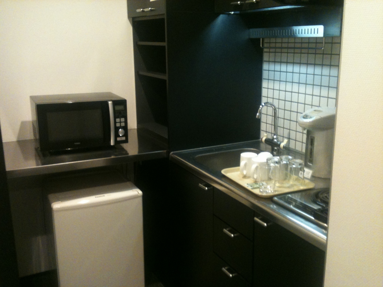 今回は一泊だけでしたが、ベットルームが開くダブルですが、テレビもベットも部屋も広かったです。しかも、それとは別に仕事ができる居間のような部屋があり、ソファに机、各部屋にテレビがありました。トイレも広く、風呂も浴槽付きで広いです。洗濯機があるので、長期滞在者にはいいと思います。キチンも付いており自炊もその気があればできます。