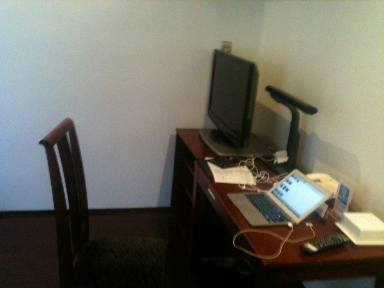 泊まるだけなら、大浴場はあるし、朝食は300円と安くて美味しいし、部屋代も高くはないしとてもいいホテルです。ただ部屋には冷蔵庫はありません。机もまともなものはありません。高い部屋にはあるようですが、普通の部屋にはありませんし、古いです。ですから、仕事を部屋ではできないですね。