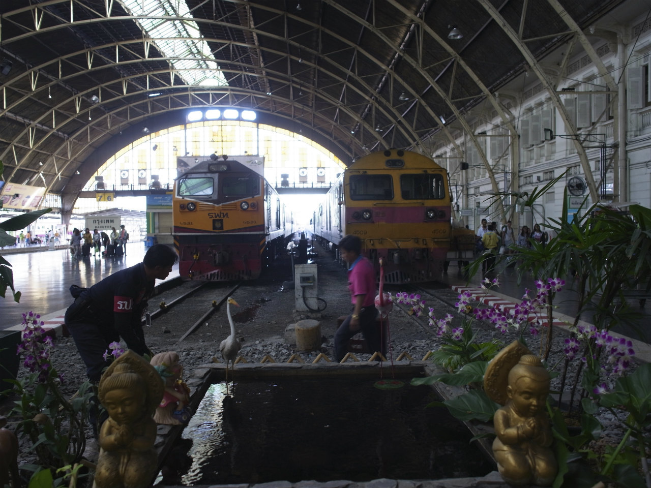 バンコクとタイ各地とを結ぶタイ国鉄の中央駅です。日本では珍しくなった頭端式の駅でいかにも終着駅といった貫禄があります。切符売り場に並んでいると国鉄職員を装ったインチキ旅行会社や詐欺師が声をかけてきますので、注意が必要です。