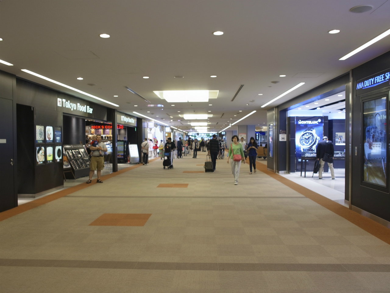 成田空港第一ターミナル、イミグレーションを通過したあと50番台のゲートへ進む途中にある免税品店やレストラン、フードコートを総称してNarita nakamiseと銘打っています。フードコートでは比較的お安くうどんや蕎麦などを楽しめます。