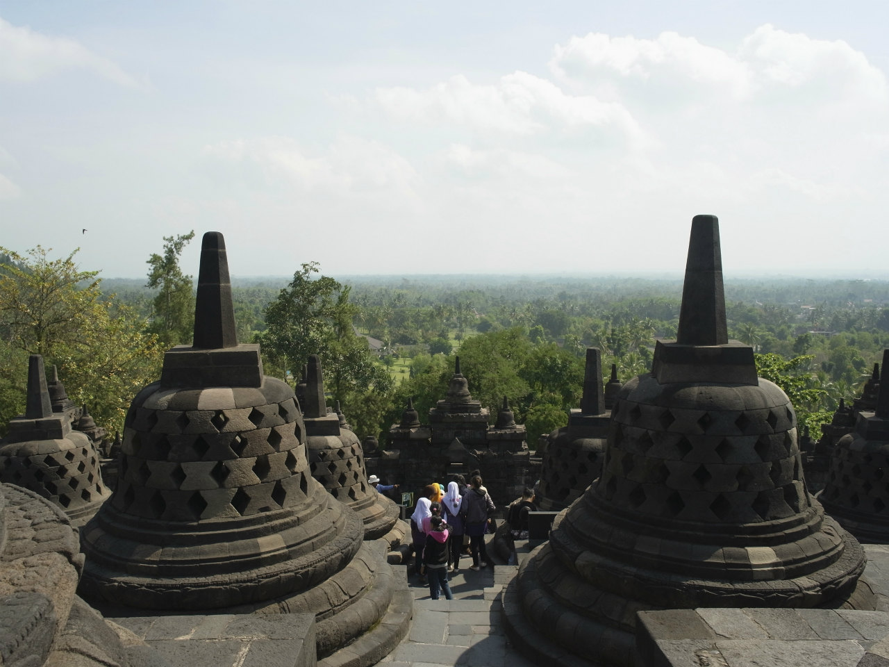 インドネシアを代表する観光地ボロブドゥール。世界遺産として登録されています。ジョグジャカルタの中心からはトランスジョグジャとバスを乗り継いで1時間半ほど。訪れるのはなかなか大変ですがその苦労に見合うだけの壮大な遺跡です。