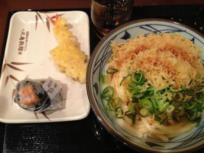 讃岐うどんチェーンの丸亀製麺の河原町三条店。三条と四条の間、minaというショッピング施設に隣接して出店しています。味は全国どの店とも同じお馴染みの味です。日替わりでランチメニューが提供されていてうどん+揚げ物+おにぎりで550円という安さです。