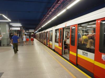 ワルシャワの地下鉄。南北方向と東西方向に各1路線ずつ運転されています。中央駅から少し離れた場所に駅が立地していたり、観光地からは若干離れたところにしか駅がなく使い勝手はイマイチですが車両は新しく、運転間隔も短くそれなりに便利です。