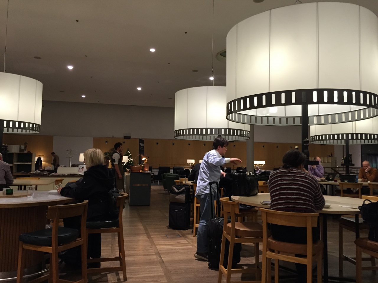 コペンハーゲン空港のSASラウンジ。ビジネスクラス利用者、スターアライアンスゴールド以上の上級会員が利用可能です。空港の他のエリアと同様北欧らしく木を多用したおしゃれなデザインが特徴的です。一応シャワーもあるので長距離のフライト前には使用可能です。