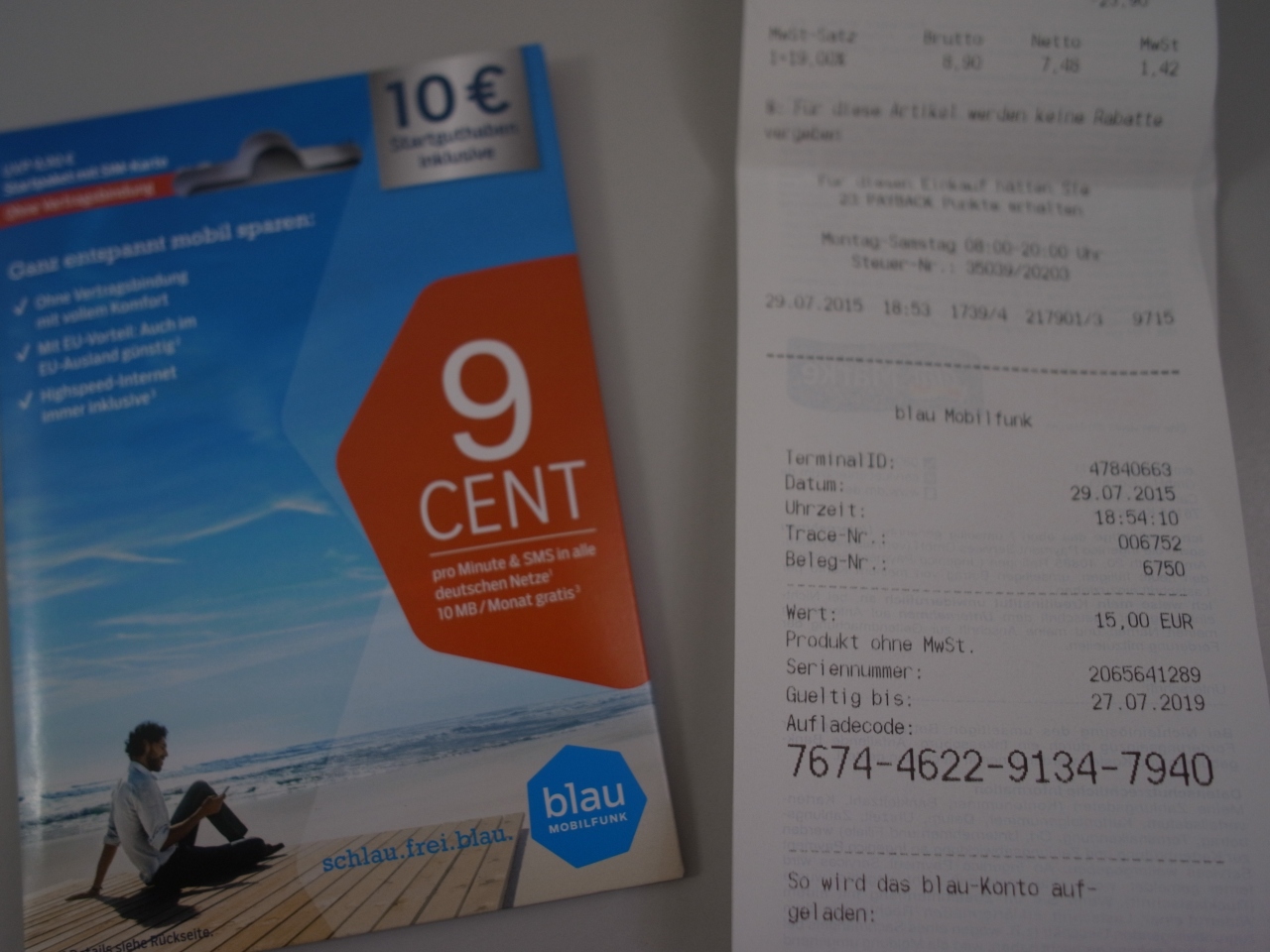 ドイツではBlauのSIMを購入し使用しました。SIM代金9.9ユーロに加え15ユーロ別途チャージして使用。1か月1GB使用で9.9ユーロでした。(そういう訳でチャージ分は余りました)登録がドイツ語なのが面倒ですがgoogle翻訳を使うなどしなんとか行けます。