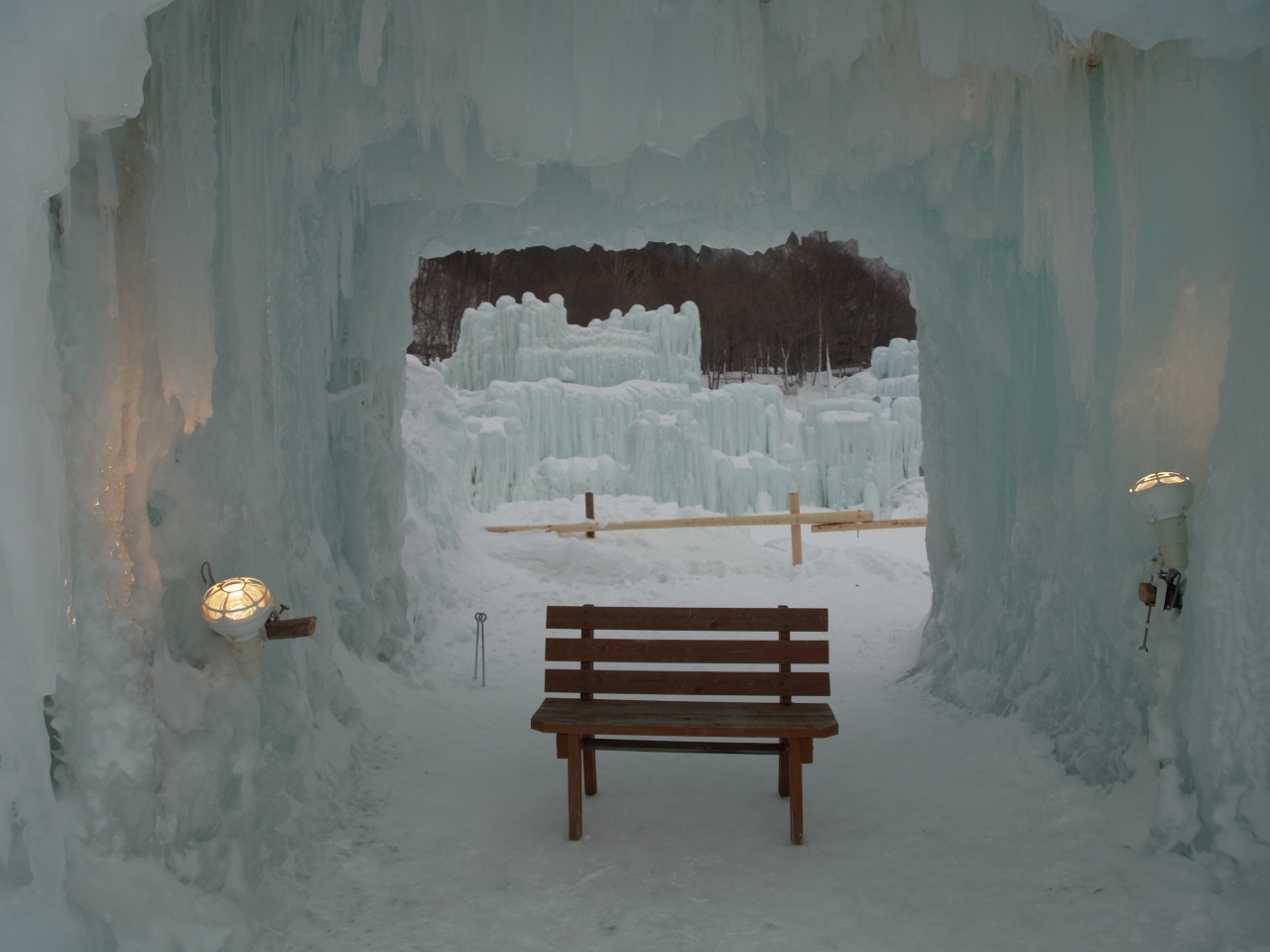 層雲峡で真冬の季節に開催される「氷瀑まつり」事前の予備知識もなく、通りすがりで行ったのですが氷でできた建物?や神社など堪能することができました。夜にはライトアップもされるということで次回はぜひ泊りがけで再訪したいところです。