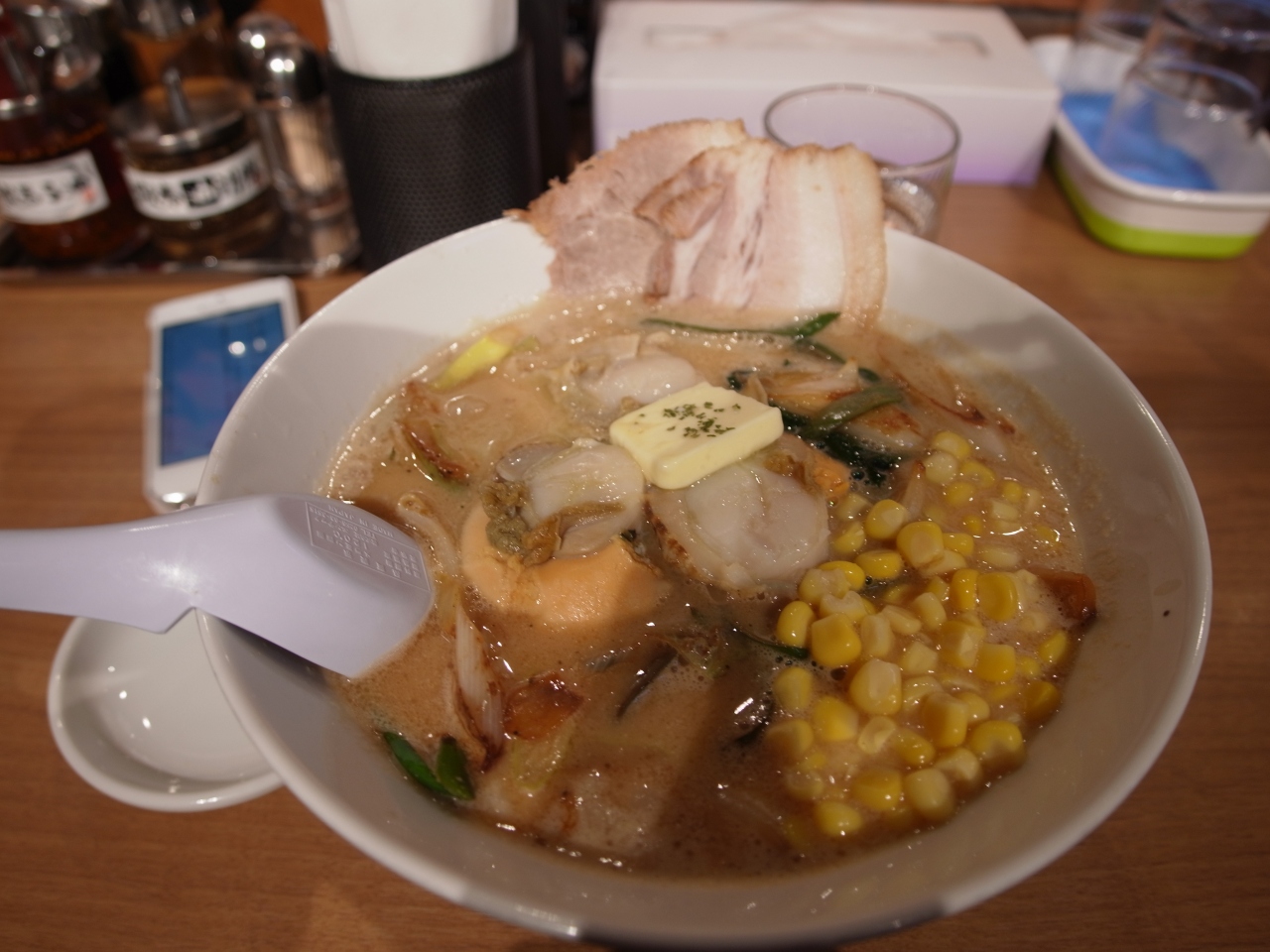 新千歳空港の中にある函館ラーメンのお店です。休日の昼時に訪問したせいか若干並びましたが回転がいいのか5分程度で入店。バターやホタテの入ったラーメン(名前は失念)を頂きましたがいかにも北海道らしい味で堪能できました。ただ、お値段もそれなりに高く・・・観光客向けなのでしかたないのでしょうね。
