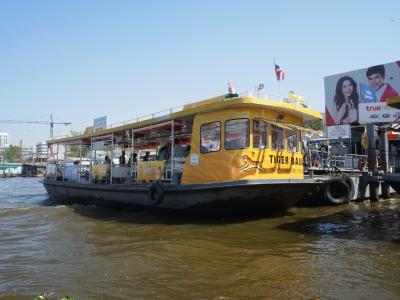 バンコク中心部からチャオプラヤー川を挟んで対岸、トンブリー地区に立地するワットアルン。タクシーで訪れるとなるとかなり大回りをしなければなりませんが、旧市街から渡し船が出ています。料金は3Bという安さ。タイガーバームの塗装をまとった小さな渡し船が便利です。