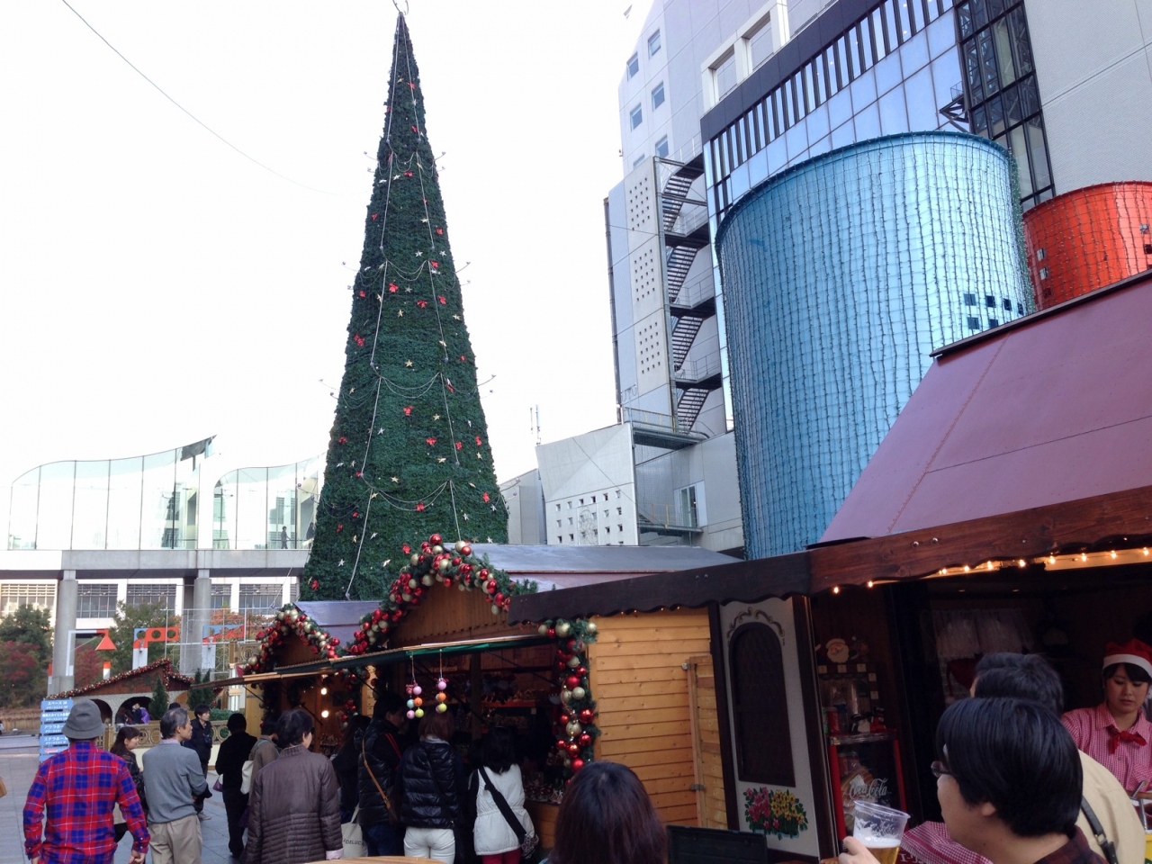 大阪スカイビルで開催されるクリスマス・マーケット。本場ドイツさながらにリンゴ酒やソーセージ、ホットドックやクリスマスツリーの飾りを販売する屋台が立ち並び賑わいを見せます。土日となるとかなりの数の来場者があるのですが少し屋台が少ないような気がしないでもありません。