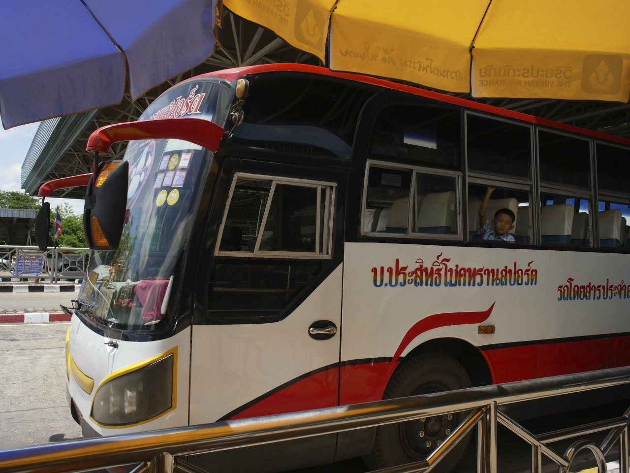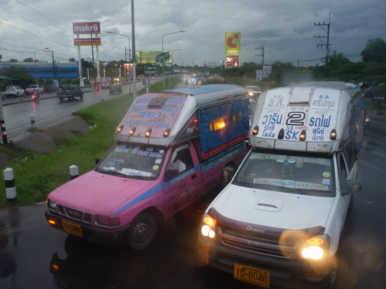 ウボンラチャタニにもピックアップトラックの荷台を客席に換装した乗り合いトラックのソンテウが運行しています。ウボンにかぎらず、コラートなどイサーンのソンテウの多くは番号ごとに決まった路線を走る方式になっています。