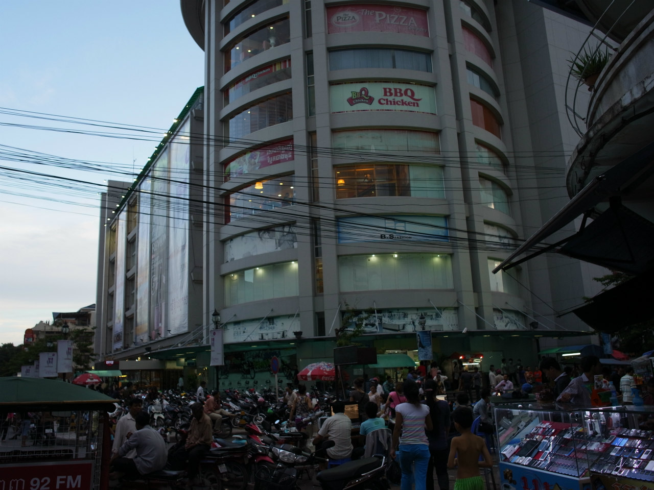 プノンペンの中心部、セントラル・マーケット近くに立地するソリア・ショッピングセンター。プノンペンには無かった先進的なショッピングセンターです。内部はどこかバンコクのマーブンクロンを思い出させる雰囲気。1Fにはスーパーマーケットも入居しています。