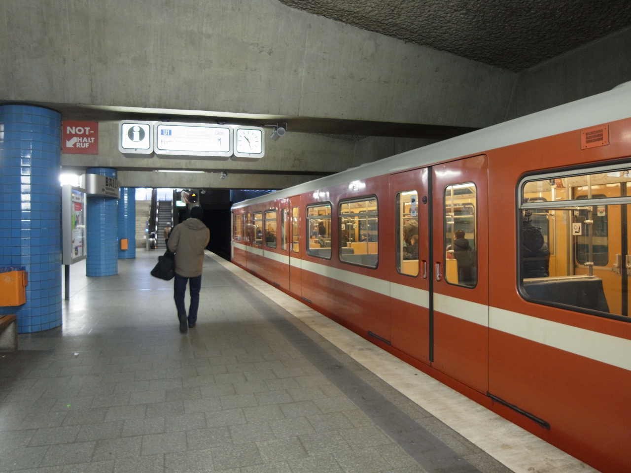 ニュルンベルクのUバーン。現在U1とU2の2路線が運行されている他、新たにU3が建設中です。U1、U2ともに中央駅から旧市街を経て郊外へと伸びています。U2はニュルンベルク空港まで伸びていて、空港アクセスとしての役割も担っています。